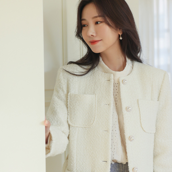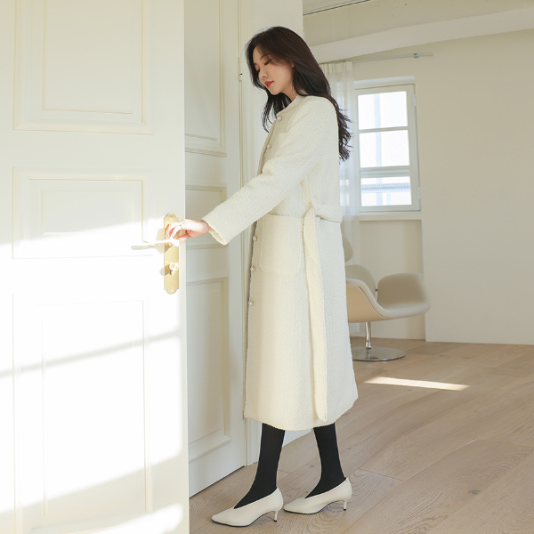 Feminine Mood Pearl Buttons Tweed Wool Long Coat(quilted lining)