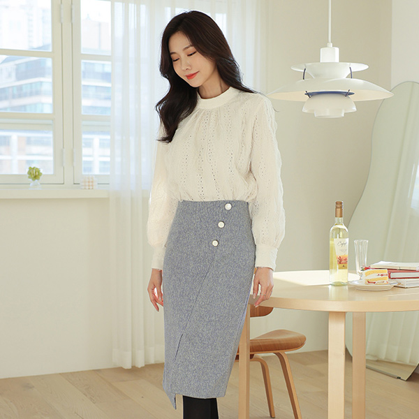 Feminine Mood Pearl Buttons Tweed Wool Long Coat(quilted lining)