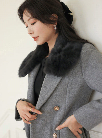 Herringbone Gold Double Button A-line Wool Coat