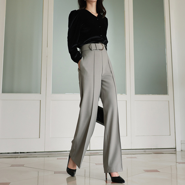 Velvet Shirring Puff V-neck Blouse