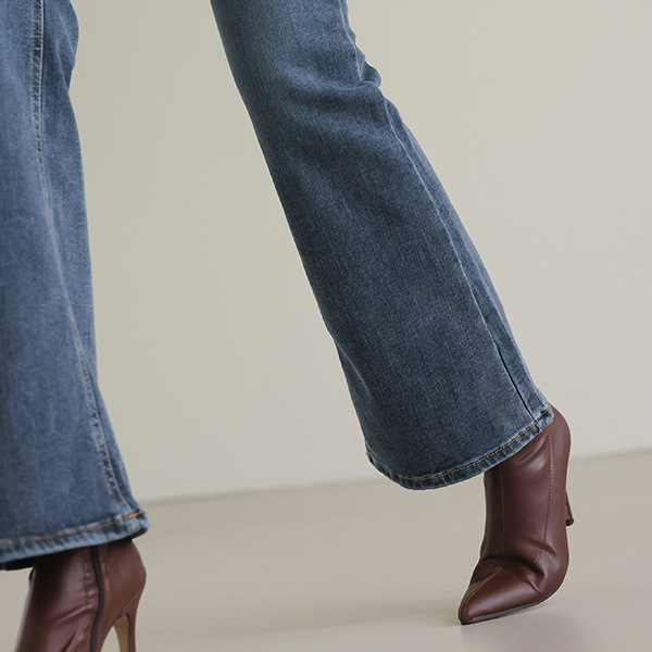 Deep-Color Slim Ankle Boots Heels