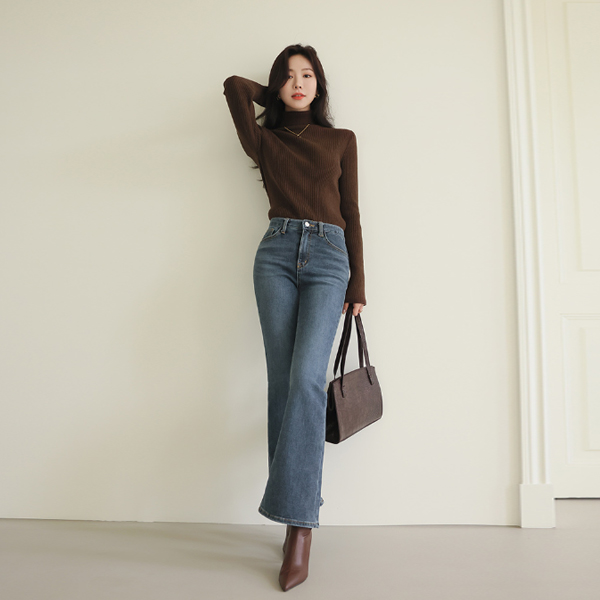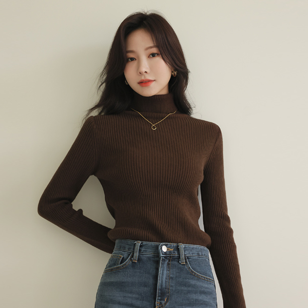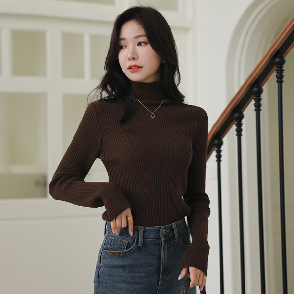 Point Color Angora&Wool Corduroy Neck Turtleneck Knit