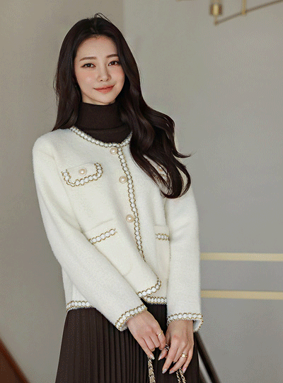 fluffy Line Trimming Pearl Cardigan