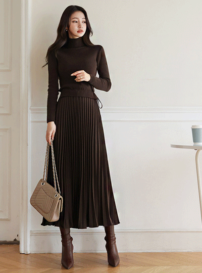 Turtleneck Wool Knit layered Pleats Dress