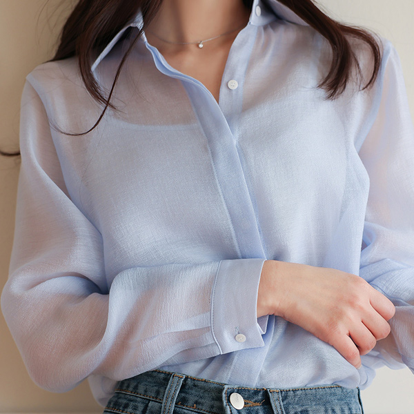 Tencel See-through Collar Shirt Single Blouse