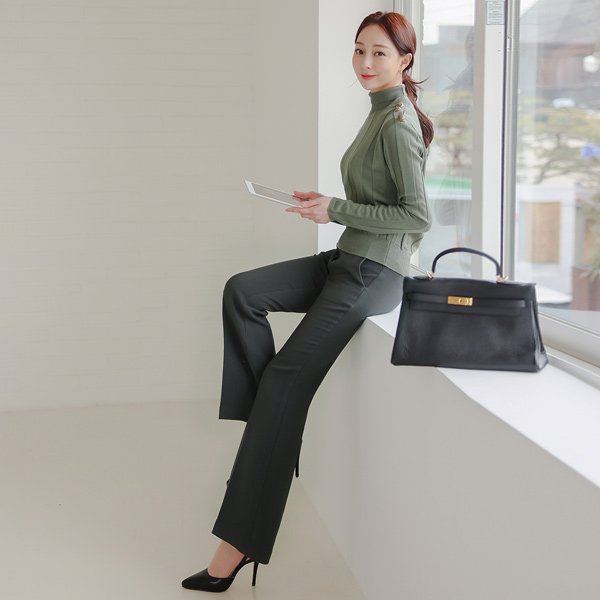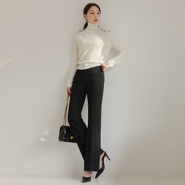 Turtleneck Shoulder Button Decoration Wide Corduroy Knit T-shirt