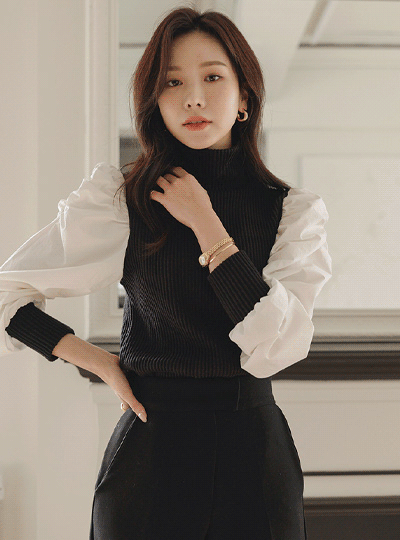 Shirring Puff layered Turtleneck