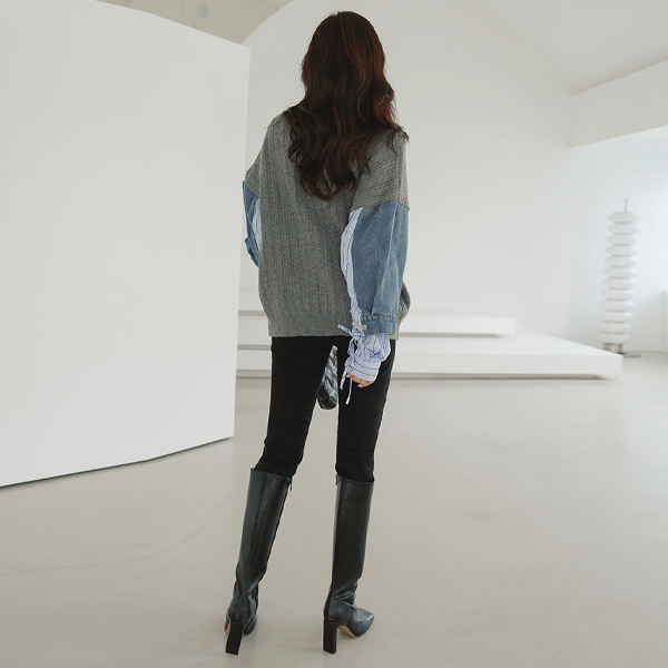 Square Shape Leather Long Boots