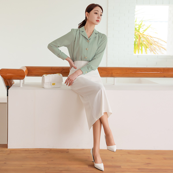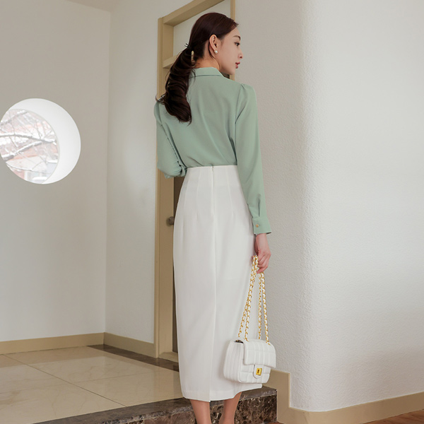 Double Collar Shoulder Shrring Pearl Buttons Blouse(spring)