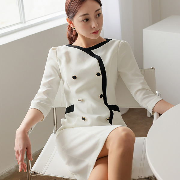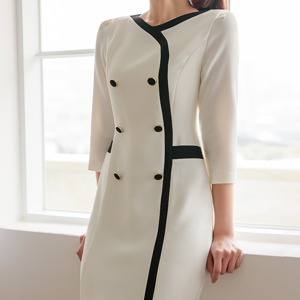 Mono Line Colored Double-button Dress