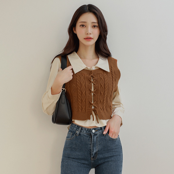 Twiddle Cross Knit Vest&퍼프셔츠 Cropset
