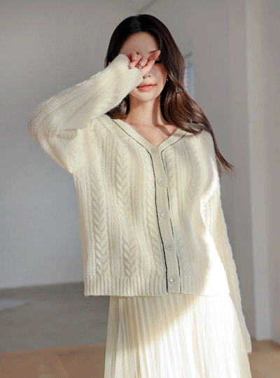 Mohair Wool Color Combination Lining Twiddle Knit Cardigan