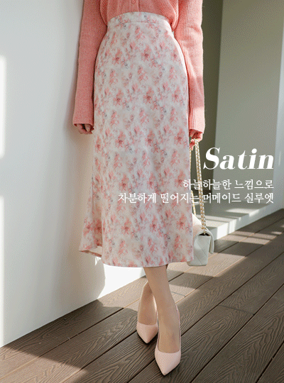 Satin Flower Mermaid Long Skirt