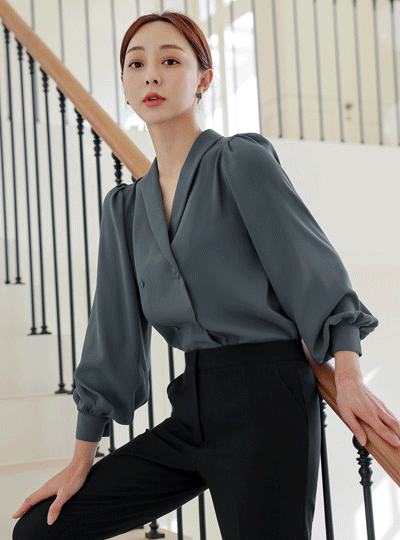 ODE Shawl Collar Double-button Blouse