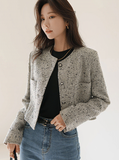 Antique Button Point Tweed Crop Jacket