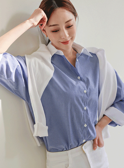 Color Combination Collar Stripe Shirt