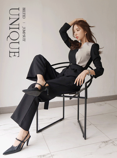 unique Color Combination Point Belted Jumpsuit