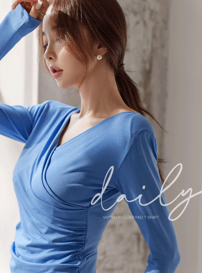 Side Wrap Shirring Vivid Shoulder Pad T-shirt