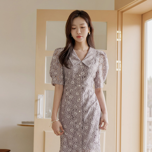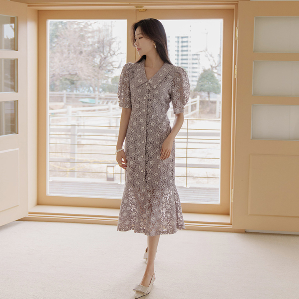 Romantic Flower Mermaid Puff Shoulder Dress