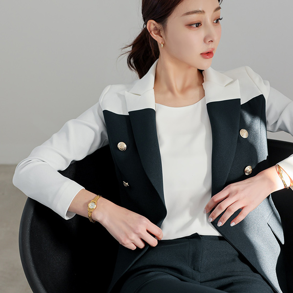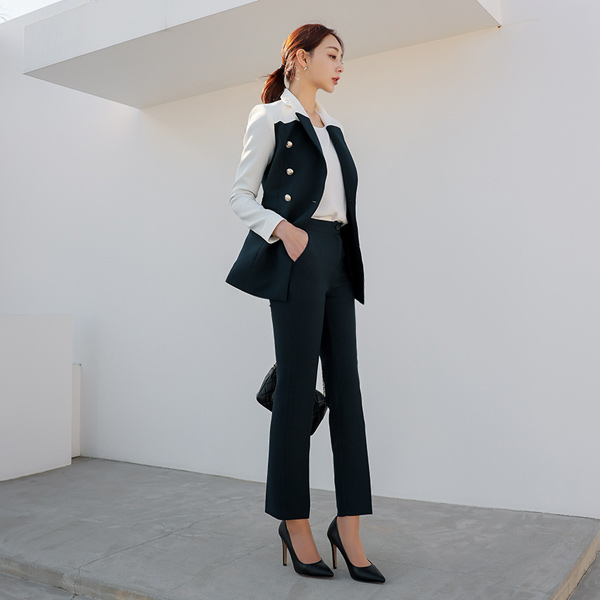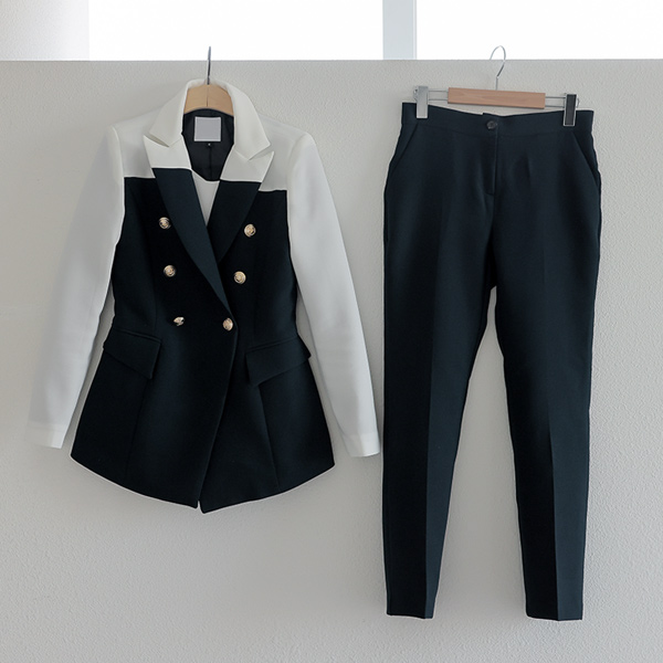 White Color Combination Gold Button Span Jacket&Slacks SET