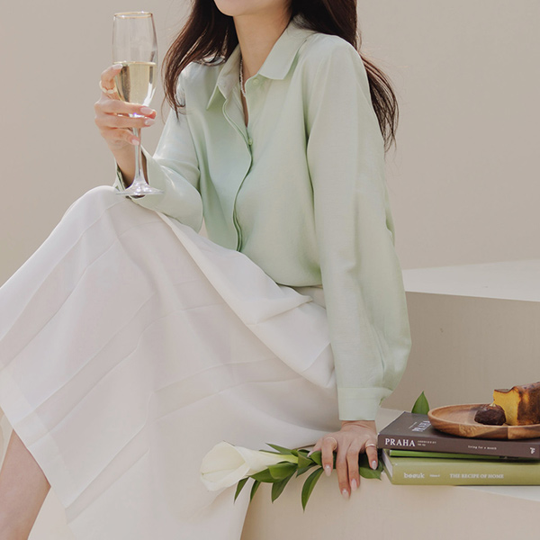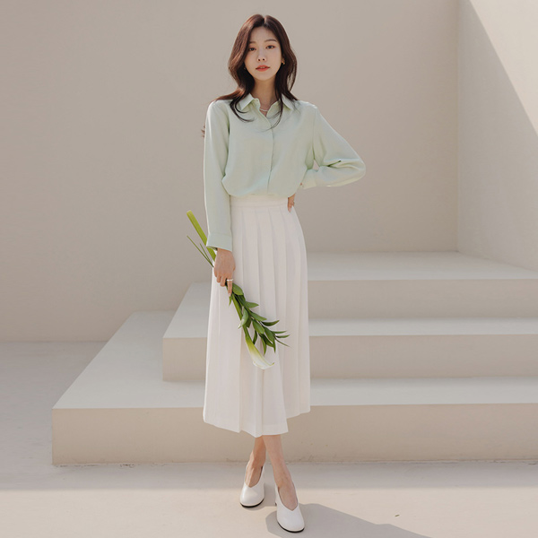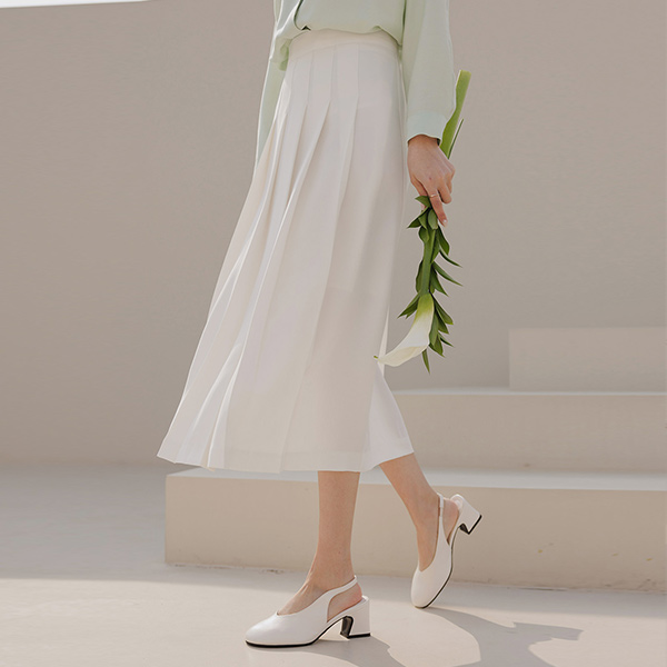 Soft Pleats Back Banding Long Skirt