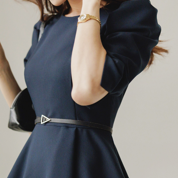 Matte Triangle Gold Buckle Slim Cowhide Belt