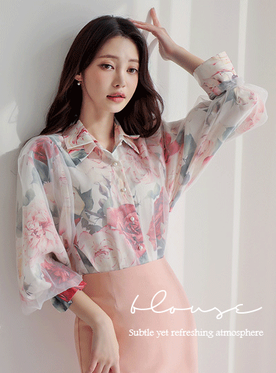 Rose Organza Pintuck collar Puff Blouse Ⅱ