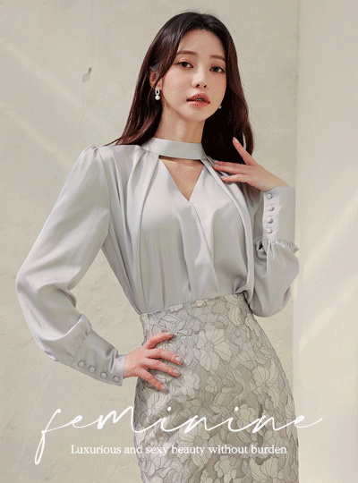 Satin Choker-Neck Wrap Blouse