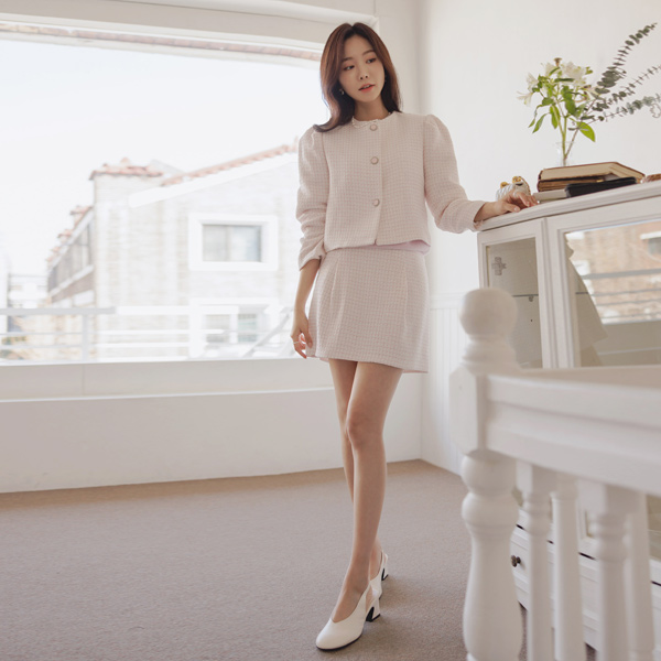 Tweed Puff Button Point Semi- Crop Jacket