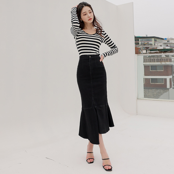 Deep Neckline Slim Corduroy T-shirt
