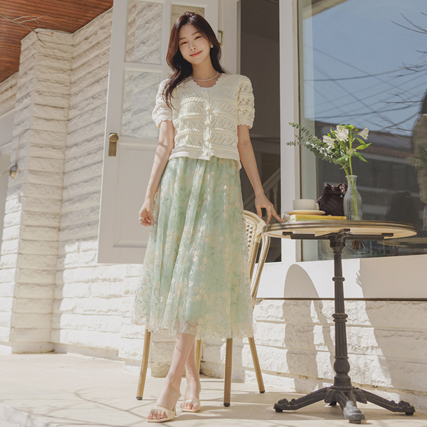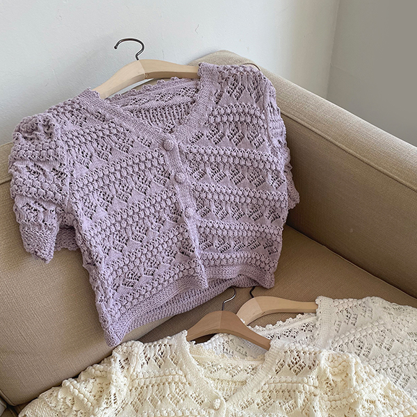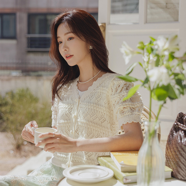 Romantic Lace Woven Puff Knit Cardigan
