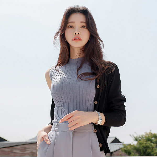 Daily Half-Neck Wide Corduroy Sleeveless shirts Knit T-shirt