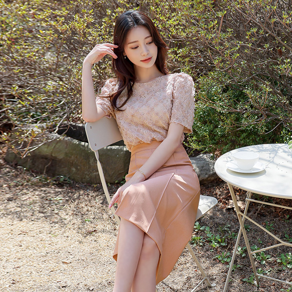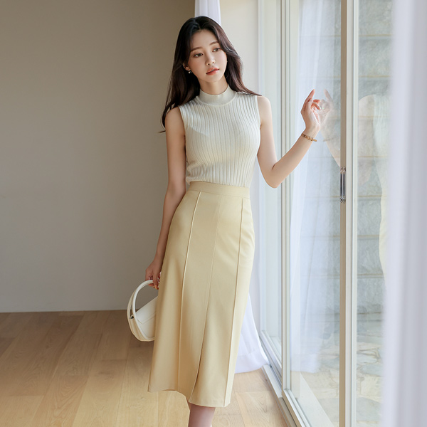 Pintuck Slit Pencil Skirt
