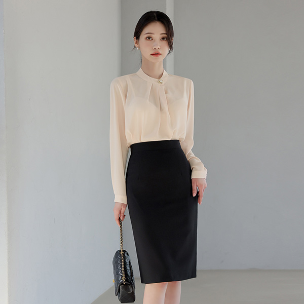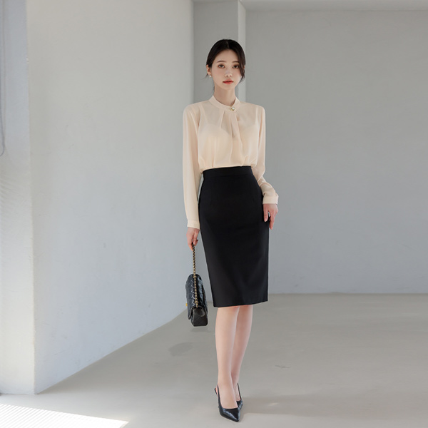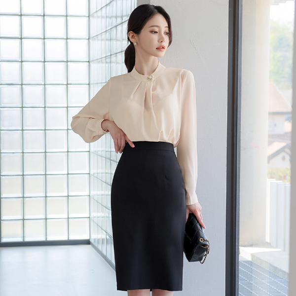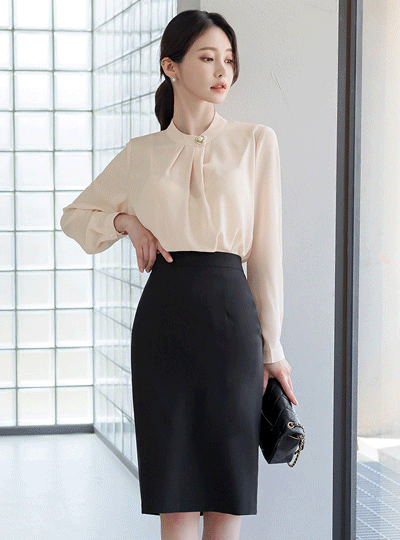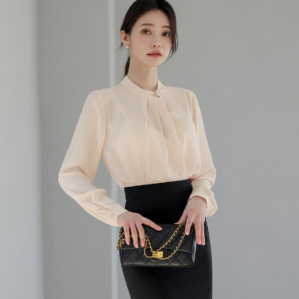 Pearl Button Pintuck Shirring Blouse