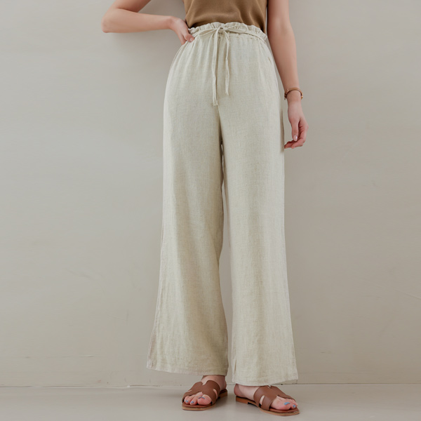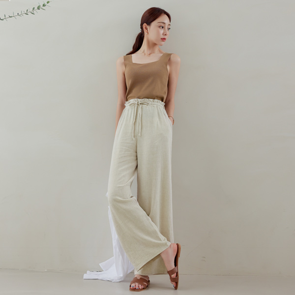 String Wide Linen Banding Pants