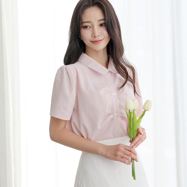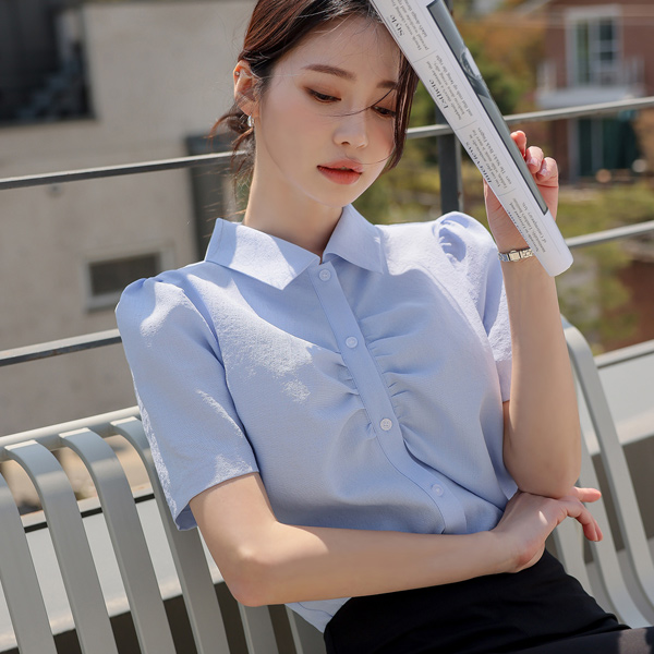 Cooling Wrinkle Shirring Blouse