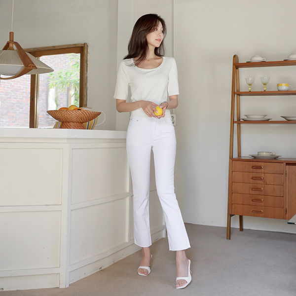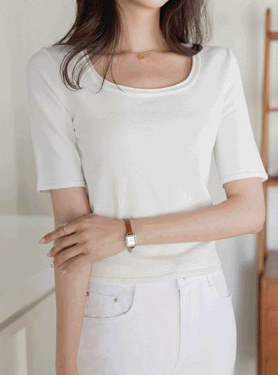 Feminine Square Neck Midi Sleeves Summer Knit T-shirt
