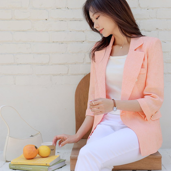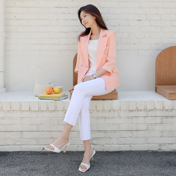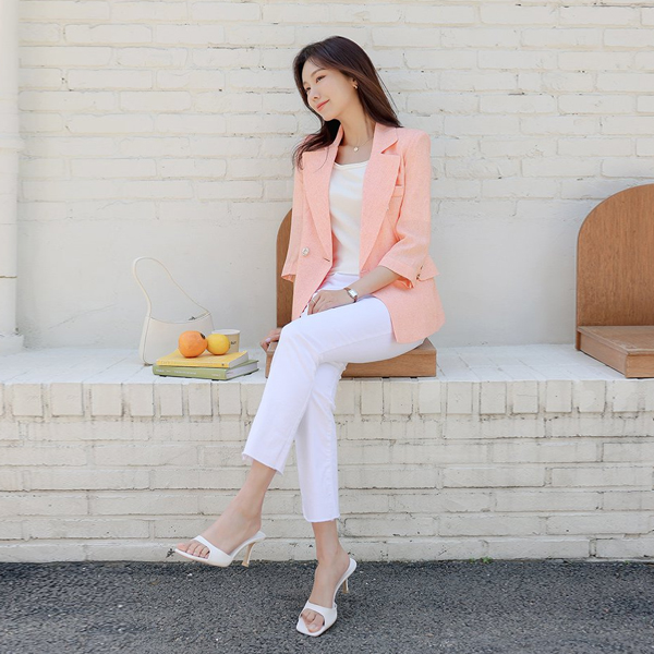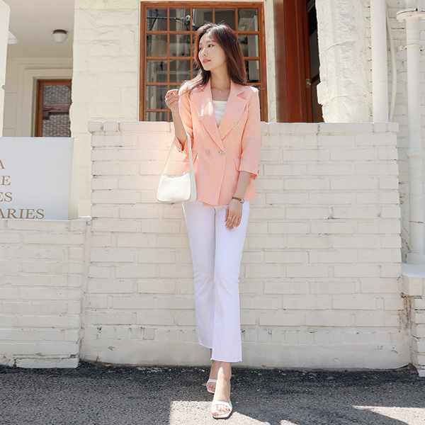 Summer Tweed Classic Three-Quarter Sleeves Slim Fit Jacket