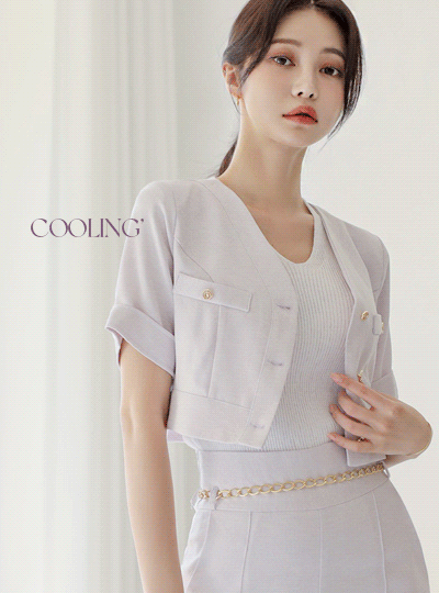 Cooling Tweed Roll-up Sleeves Short Jacket