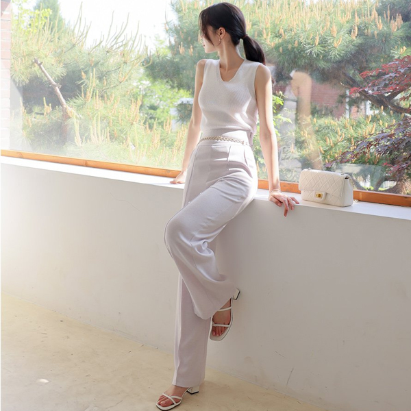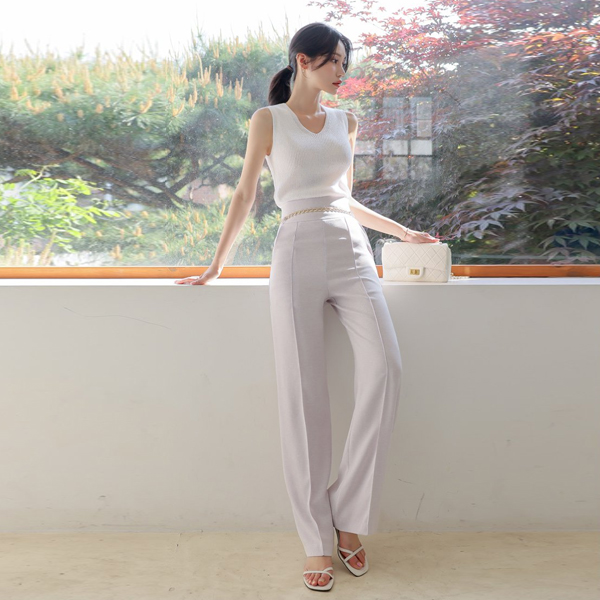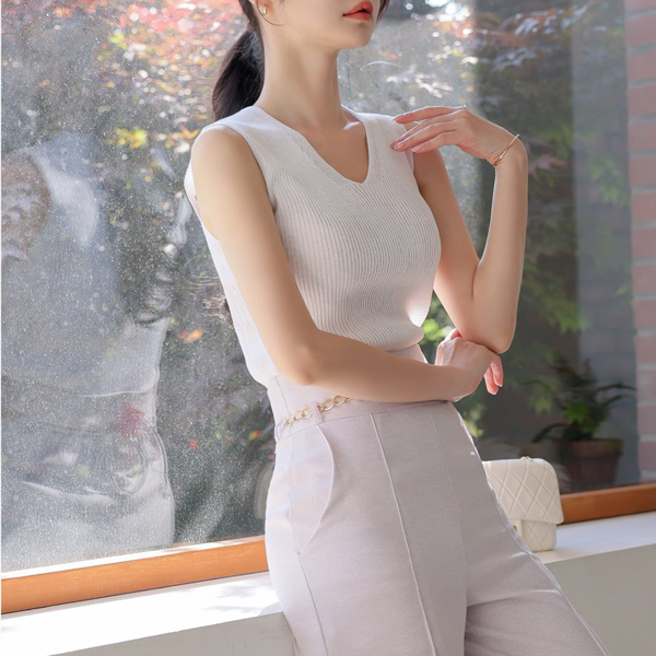 Basic Slim Corduroy V-neck Knit Sleeveless shirts