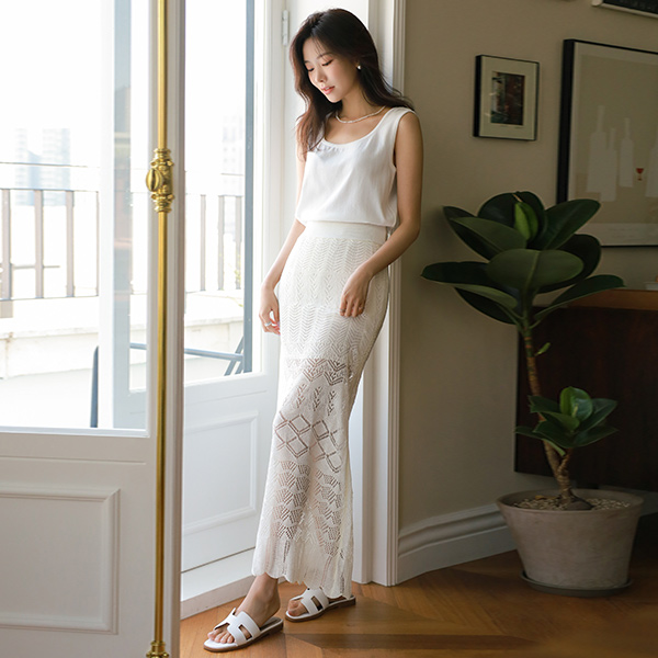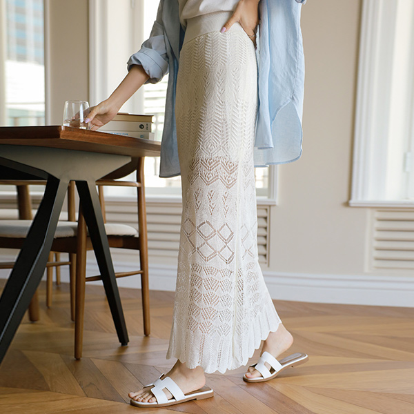 Romantic See-through Punching Knit Long Skirt