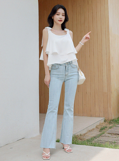 Two button High-Waist Long Boot-Cut Denim-Pants