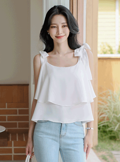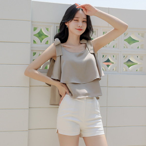 Satin Cancan Frill Sleeveless shirts Ribbon Blouse