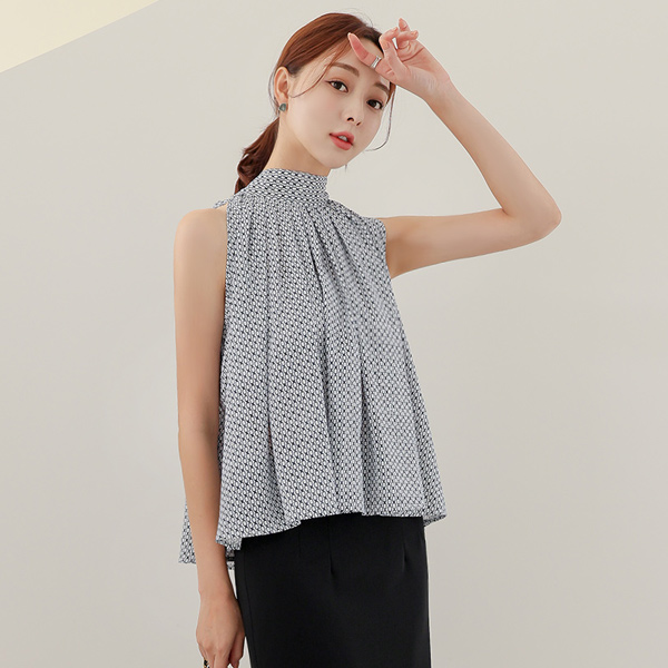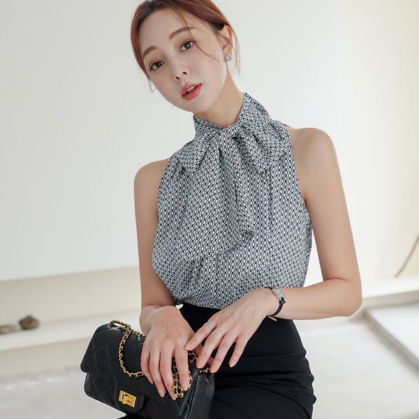 Chain Scarf High-Neck Sleeveless shirts Blouse