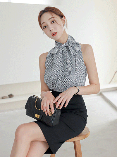 Chain Scarf High-Neck Sleeveless shirts Blouse