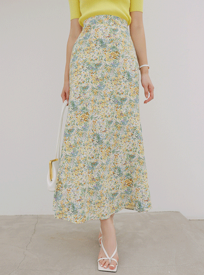 Back Banding Mini Flower Long Skirt