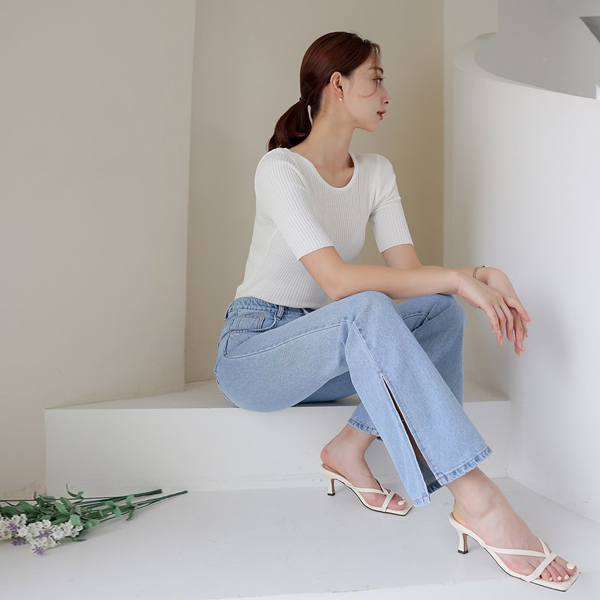 Denim Lining Tweed Open Linen Jacket(summer)