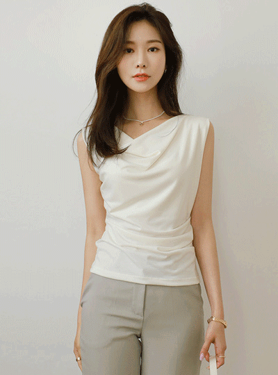 Elegance Mood Shirring Detail Sleeveless shirts T-shirt