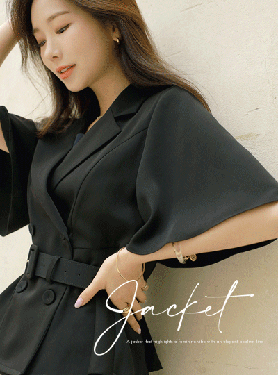 wing Sleeves Point Two button Peplum Jacket (BeltSET)