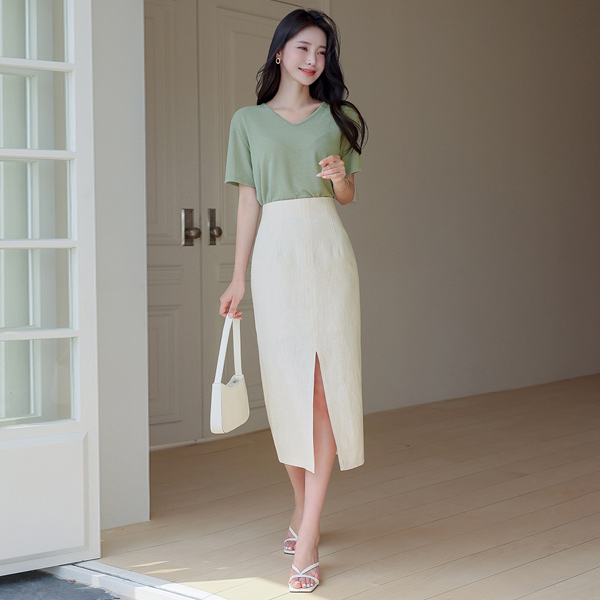Summer Linen Front Slit Long Skirt